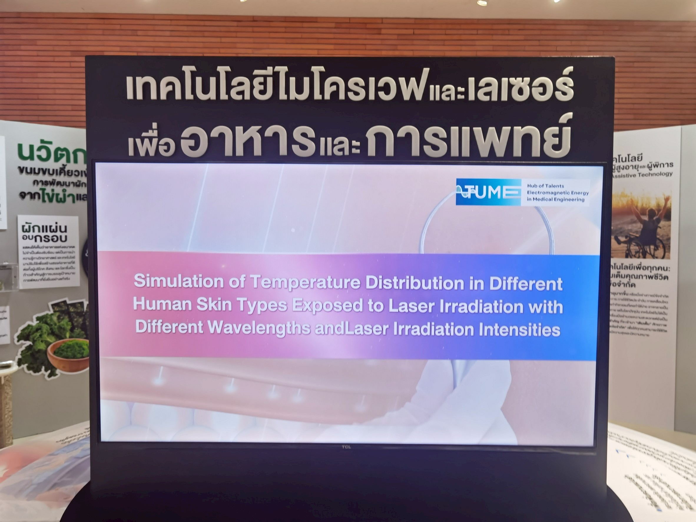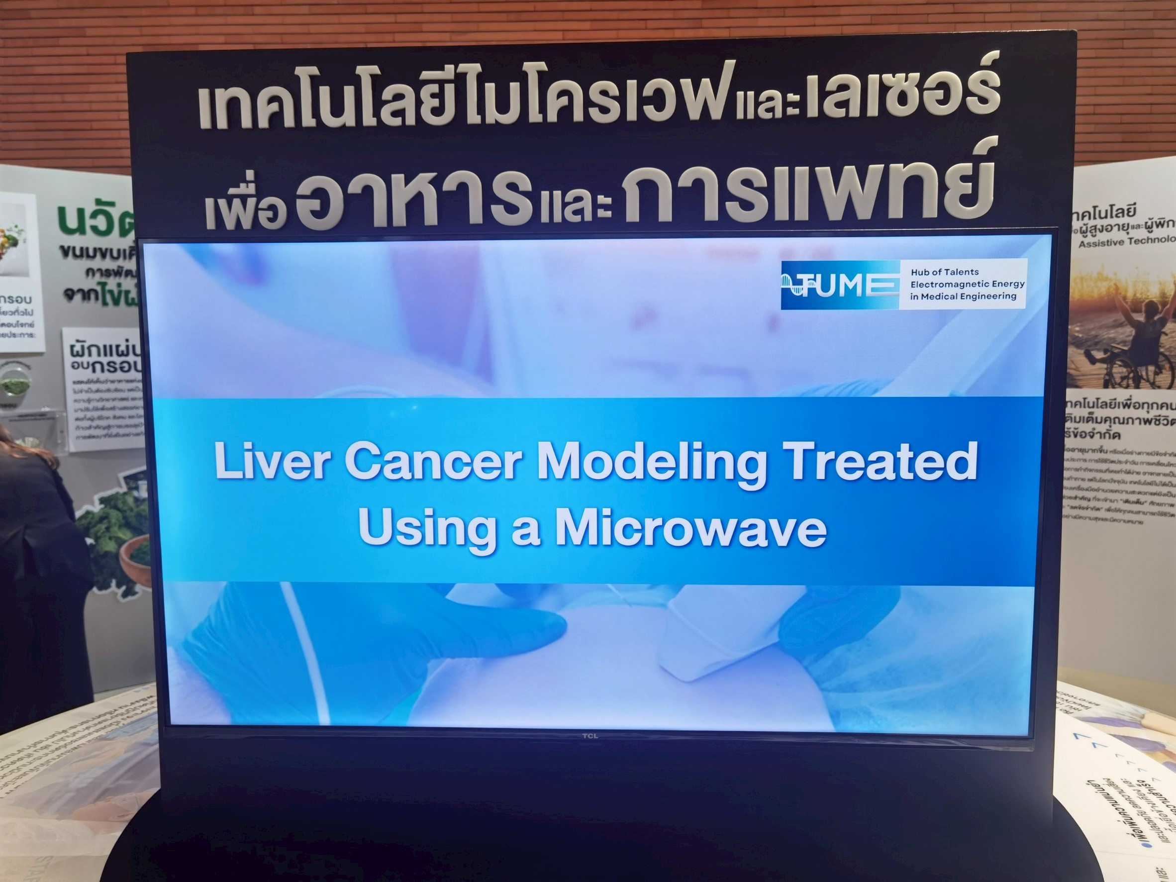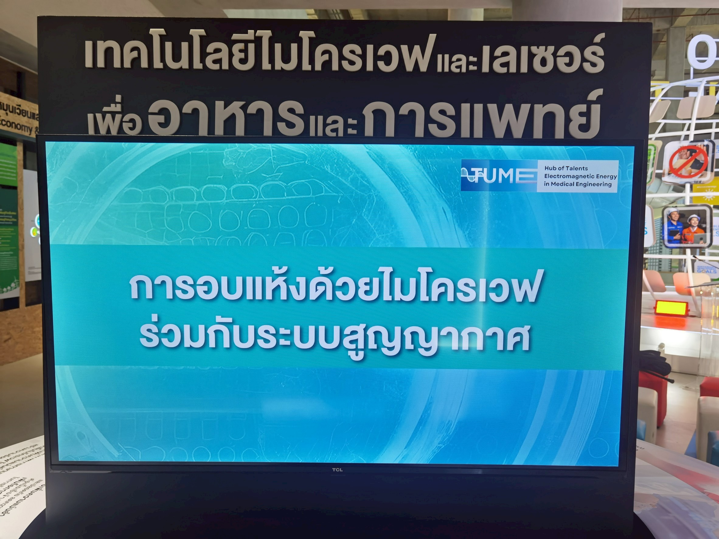 Hub of Talents Electromagnetic Energy in Medical Engineering ได้เข้าร่วมนิทรรศการ “SDGs เพื่อประชาชน: นวัตกรรมเพื่อชีวิต – สร้างอนาคตที่ยั่งยืน” ซึ่งจัดแสดงผลงานวิจัยกว่า 30 ชิ้น จากหลากหลายสาขาวิชาของมหาวิทยาลัยธรรมศาสตร์ ที่มุ่งเน้นการเปลี่ยนแปลงสังคม เศรษฐกิจ และสิ่งแวดล้อมสู่ความยั่งยืน ณ SDG Lab อุทยานการเรียนรู้ป๋วย 100 ปี มหาวิทยาลัยธรรมศาสตร์ ศูนย์รังสิต
